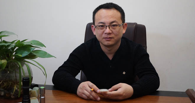 且行且学习,不停息他善于创作过程中因材施艺,用创意、精湛的技艺弥补材料的缺陷,刀法自然,线条流畅。作品插屏《杨柳观音》,原创作思路是做一个摆件,打开后发现有瑕疵,因此便顺势做成一个插屏,作品中观音左手托玉净瓶,右手手执杨柳枝,向人间抛洒甘霖,整体飘逸洒脱,生动传神。然而,从写实到写意之间的谨慎斟酌,过程非常艰难,一方面既要考虑到市场的需求,一方面又要考虑到艺术创造的最大化价值,他在这条道路上走得小心谨慎。他认为自己还年轻,学习的东西还非常多,玉雕界的前辈们带动着整个市场的发展,他自己尚处于学习阶段,还处于摸索之中,还需要不断地学习。在未来,他也会尝试更多的题材,并有所创新,将看到的每个意象用玉雕表现出来,不拘一格,创作出更加贴合题材、更有深意的优秀作品。